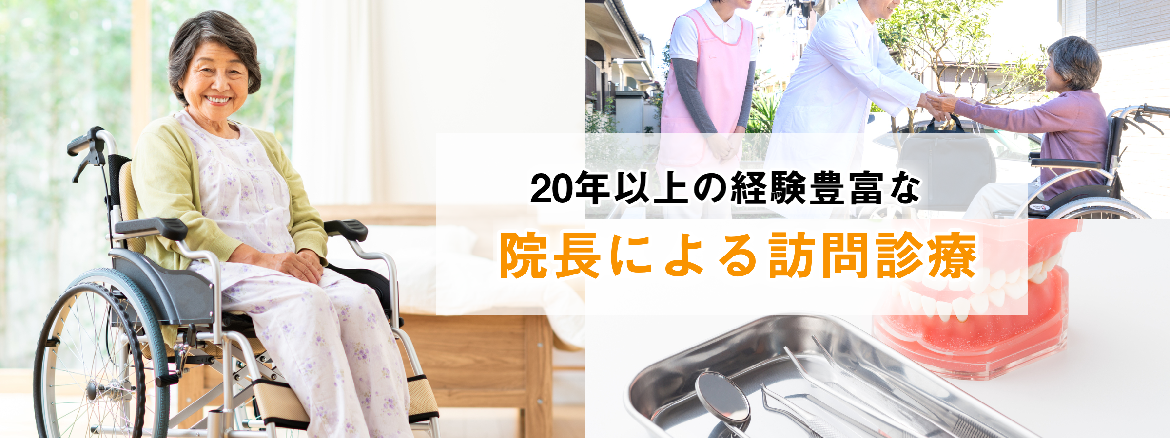 当院の訪問歯科診療は、20年以上(※)の経験を持つ院長が担当しています。個人宅または施設に伺い、ご高齢の方・お体が不自由で通院が難しい方々に向けた訪問歯科診療を実施しています。