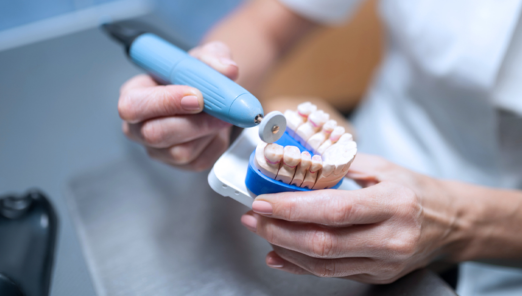 具体的には、専用の咬合器(こうごうき)という機器に入れ歯をセット。上下の噛み合わせのバランスを再評価し、必要な調整を行う流れです。